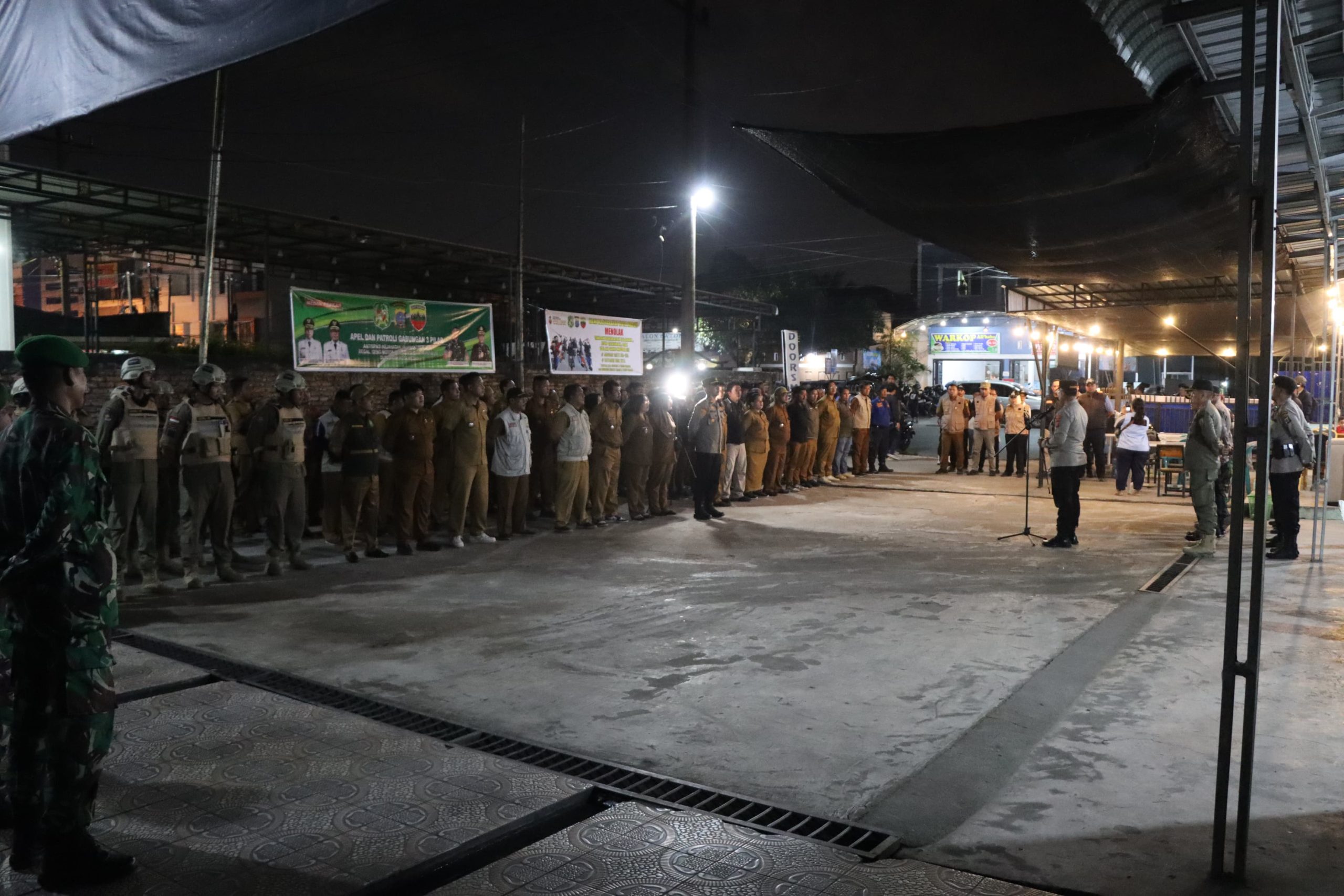 patroli gabungan 3 pilar antisipasi kejahatan jalanan, tawuran, begal, geng motor, dan gangguan Trantibum di Wilayah Kota Medan di Jalan Setia Budi, Simpang Selayang, Kecamatan Medan Tuntungan, Selasa (18/3/2025) malam.