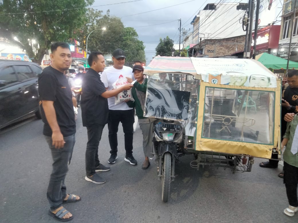 Alumni Diktukba Polri Angkatan 2008 Polda Sumut Bagikan Takjil Serta Sembako kepada Warga di Jalan HM Joni Medan
