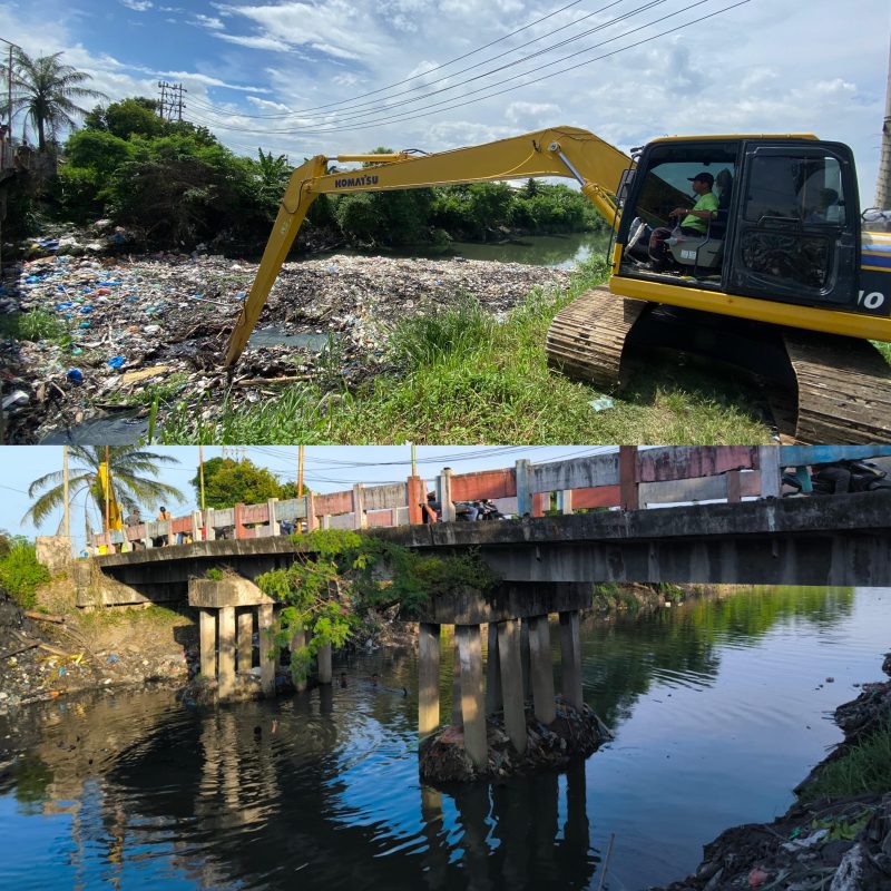 Dinas lingkungan hidup kabupaten Deli Serdang berkordinasi melalui dinas SDABMBK langsung menurunkan alat berat untuk membersihkan sampah yang menumpuk di pinggiran sungai di desa Pematang johar, Kecamatan Labuhan deli kabupaten Deli Serdang provinsi Sumatera Utara