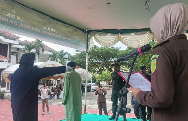 Liputan16.com, Nagan Raya – Jaksa penuntut umum Kejaksaan Negeri (Kejari) Nagan Raya, Provinsi Aceh mengeksekusi hukuman cambuk terhadap seorang terpidana jarimah maisir atau perjudian berdasarkan putusan mahkamah syariah setempat, yang dilaksanakan di Halaman Kantor Kejari setempat, Selasa (20/5/2025).