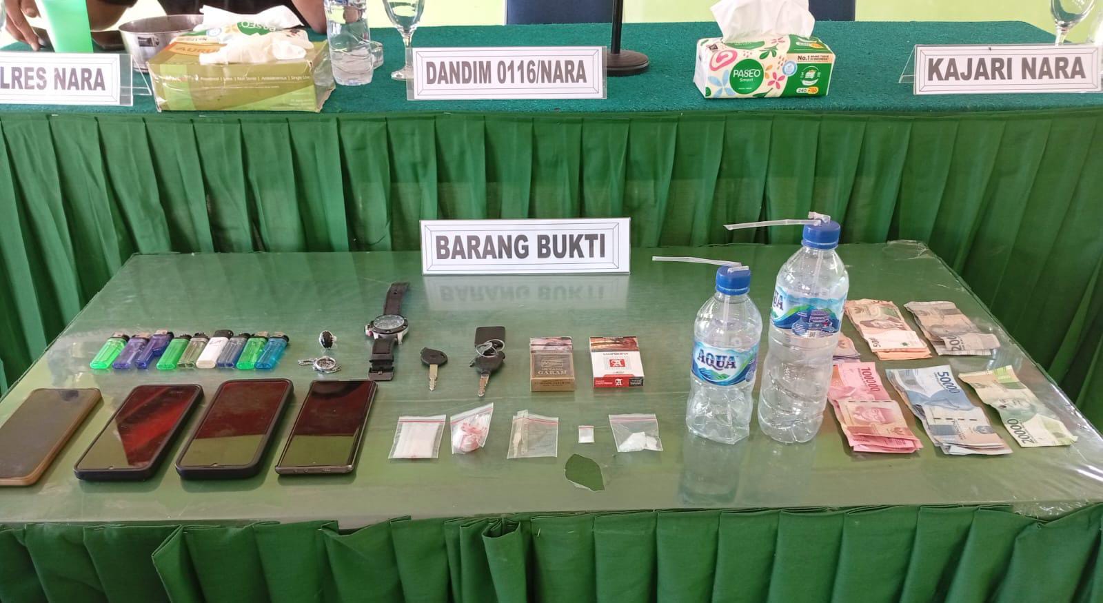 Dalam operasi tersebut, petugas berhasil mengamankan empat orang pelaku berinisial SB (25), IS (43), S (35), dan TR (20)yang seluruhnya berasal dari wilayah Kecamatan Darul makmur. Dari tangan para tersangka, diamankan plastik bening berisikan paket sabu dengan total berat 4 gram,dua buah alat hisap (bong)satu buah kaca pirek,uang tunai senilai Rp. 1.300.000 beserta empat unit Handphone merk inpinik warna kuning, oppo warna biru muda, Vivo Y12 warna biru tua, Readmi warna abu abu tua, Satu jam tangan beserta dua unit sepeda motor milik tersangka.