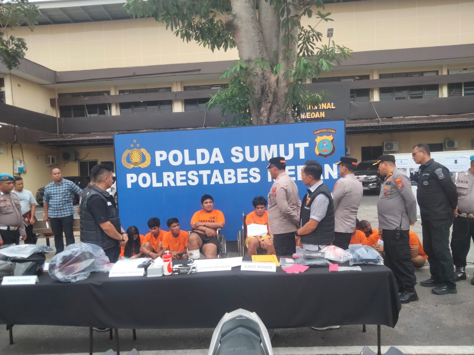 Kapolrestabes Medan Kombes Pol Gidion Arif Setyawan memaparkan keberhasilan anggota mengungkap kasus maling motor dan jambret di wilayah hukum Polrestabes Medan, Kamis (19/6/2025).