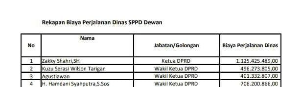 Mereka menyoroti alokasi anggaran untuk perjalanan dinas yang tercantum dalam Surat Perintah Perjalanan Dinas (SPPD), yang mencapai angka fantastis sebesar Rp 1.125.425.489 bagi Ketua DPRD Kabupaten Deli Serdang, Provinsi Sumatera Utara. Sementara itu, Wakil Ketua DPRD memperoleh SPPD dengan nilai berkisar antara 400 juta hingga 700 juta rupiah.