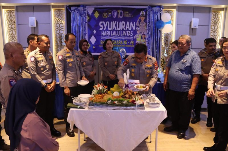 Sekira pukul 11.00 WIB dilakukan pemotongan nasi tumpeng secara serentak seluruh Indonesia, untuk jajaran Polrestabes Medan, Plt.Kapolrestabes Medan yang mewakili dan disaksikan oleh beberapa PJU dan personil Sat Lantas Polrestabes Medan.