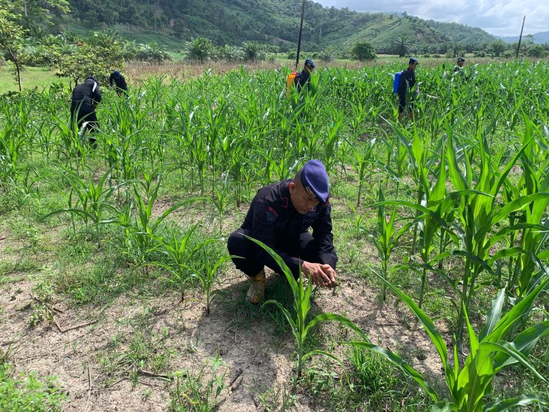 “Kami berupaya memastikan tanaman jagung tumbuh sehat tanpa gangguan hama maupun gulma. Dengan perawatan intensif, diharapkan hasil panen dapat maksimal dan bermanfaat bagi personel serta masyarakat sekitar,” ujar AKP Jaya Putra.