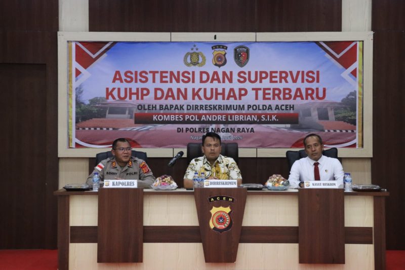 Liputan16.com, Nagan Raya – Dalam rangka meningkatkan profesionalisme dan kualitas penegakan hukum, Direktorat Reserse Kriminal Umum (Ditreskrimum) Polda Aceh melaksanakan kegiatan asistensi dan supervisi terkait penerapan KUHP dan KUHAP terbaru di Polres Nagan Raya, _Jum’at 24 April 2026._